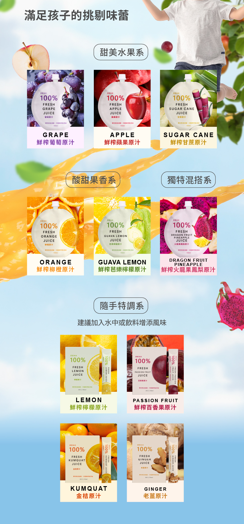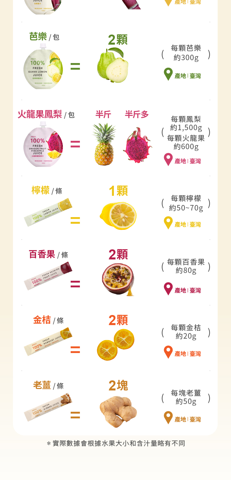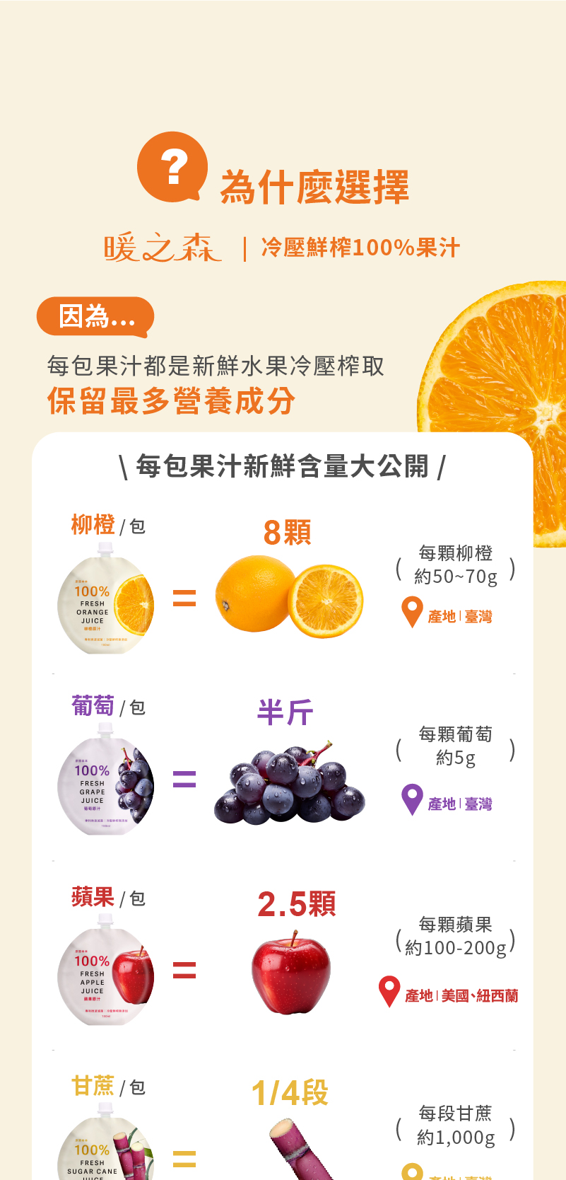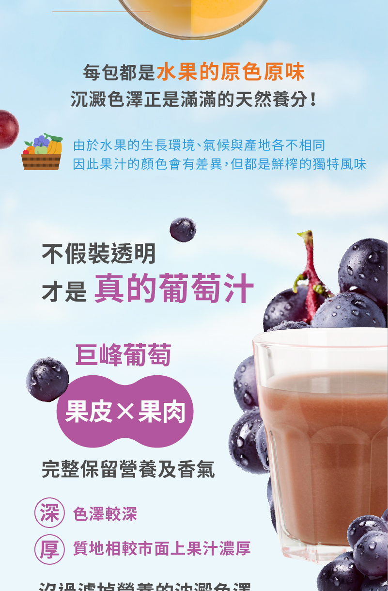 ✅嚴選台灣在地新鮮水果現榨的100% 水果原汁