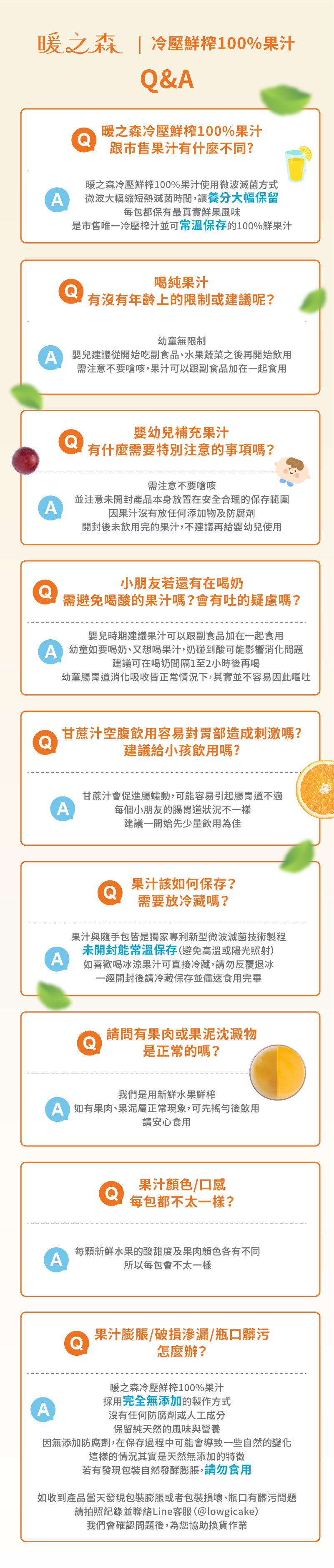 注意事項:本產品為天然水果鮮榨,若有沈澱及顏色變深,乃為自然現象,請搖勻後安心飲用。